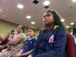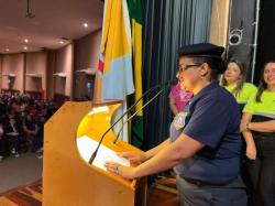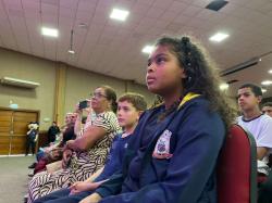 A aluna do 6º ano da Escola Olavo Bilac, Isadora de Moura, falou sobre a participação no projeto. "Foi uma experiência muito boa. A gente aprendeu muitas coisas no Promotores da Paz e eu estou muito feliz em estar aqui hoje. Aprendemos que o uso de drogas é algo muito errado, e também não devemos praticar bullying. Eu achei tudo muito bom”, disse.