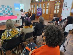 A Prefeitura do Rio Grande recebeu, nesta terça-feira (21), no Salão Nobre Deputado Carlos Santos, a palestra “Autocuidado aliado da rotina e da organização”, ministrada pela mentora de produtividade e gestão do tempo, Raquel Ávila. O encontro foi promovido pela Superintendência de Associativismo, Cooperativismo e Empreendedorismo Feminino da Secretaria de Município de Desenvolvimento, Inovação e Economia do Mar (SMDITMAR), dentro da programação do Outubro Rosa, mês de conscientização e prevenção ao câncer de mama.