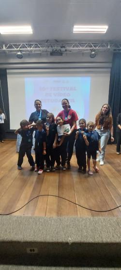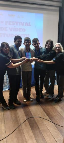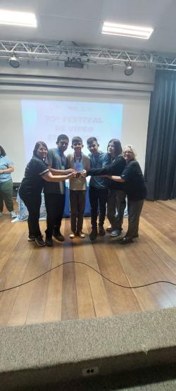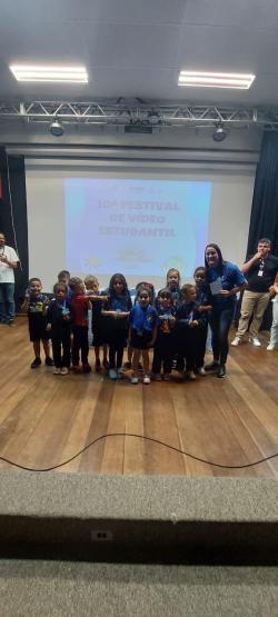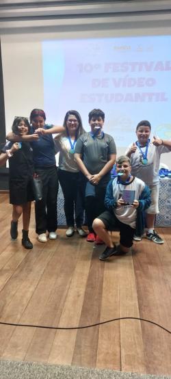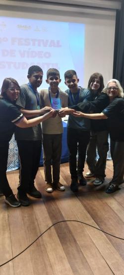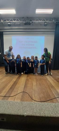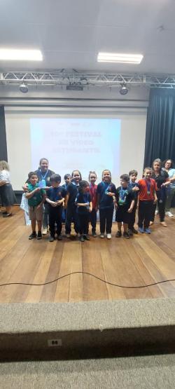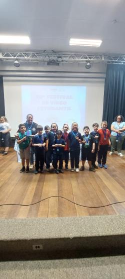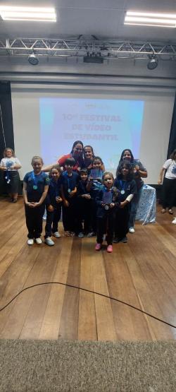 • Melhor Roteiro: "A enchente de 2024: uma história contada pelos alunos da EMEF Coração de Maria" - sob a orientação da Profª Nara Suzana da Silva - EMEF Coração de Maria