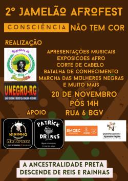 No mesmo horário, outra atividade ocorre na Rua 6, bairro BGV. Lá, está previsto o 2º Jamelão Afrofest, organizado pela Associação Carnavalesca Cultural Recreativa e Esportiva Regueiros do Jamelão e a Unegro RG. O evento promove o combate ao racismo estrutural nas comunidades periféricas e terá diversas atrações culturais - exposições de arte, culinária africana, corte de cabelo, curso de tranças afro, música ao vivo (hip-hop, reggae, samba, rock).