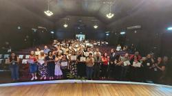 A programação municipal em homenagem ao Dia do Servidor Público, iniciada pela manhã no Teatro Municipal, teve continuidade à tarde com a celebração dedicada aos servidores da Secretaria da Educação (SMEd). Foram reconhecidos profissionais que completaram 40, 35, 30, 20 e 10 anos de dedicação ao serviço público em Rio Grande. A cerimônia reuniu trabalhadores de diferentes áreas da secretaria e marcou mais um momento de valorização da trajetória daqueles que contribuem diariamente para o funcionamento dos serviços na Educação.