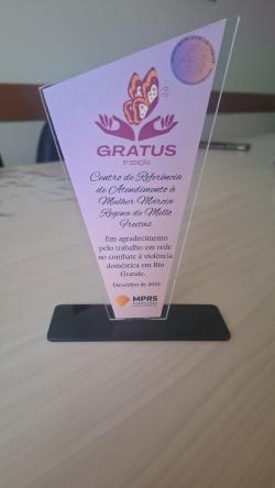 O Centro de Referência de Atendimento à Mulher Márcia Regina de Mello Freitas – CRAM, vinculado à Secretaria de Assistência Social e Direitos Humanos – SMADH, foi homenageado pela Rede de Enfrentamento à Violência Doméstica do Rio Grande. O reconhecimento ocorreu durante a terceira edição do evento GRATUS, realizado na última semana, no prédio do Ministério Público do Rio Grande do Sul. O evento destacou instituições e profissionais que atuam diariamente na proteção, orientação e acolhimento de mulheres em situação de violência.