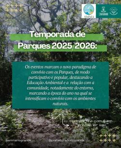 A Prefeitura do Rio Grande, através da Secretaria de Município de Meio Ambiente e Mudanças Climáticas – SMMA, convida a comunidade rio-grandina para a abertura da Temporada de Parques 2025/2026.