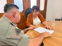 A prefeita Darlene Pereira recebeu na sede do Executivo Municipal, integrantes da Brigada Militar para tratar de demandas relacionadas ao Programa Educacional de Resistência às Drogas e à Violência (PROERD). A reunião contou com a presença dos secretários municipais de Mobilidade, Acessibilidade e Segurança (SMMAS), Carlos Alberto Brusch Terres, e de Relações Institucionais e Comunitárias (SMREIC), Cláudio Silva, e do tenente Pereira Nunes e o soldado Sagaz.