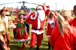 O ponto alto da festa veio do céu. O barulho do helicóptero da Marinha do Brasil, anunciado pelo locutor da festa, indicou a chegada do Papai Noel e provocou uma verdadeira corrida de crianças no entorno do campo de futebol da praça. Era abraço atrás de abraço, mãos estendidas, olhos brilhando e uma alegria difícil de descrever quando o bom velhinho apareceu. Muitas das crianças e seus pais sabiam que aquele seria, talvez, o único momento de contato com o Papai Noel neste Natal — e, quem sabe, a única oportunidade de receber um brinquedo. A cena se repetiu pela segunda vez na história da praça: a primeira havia ocorrido em 2017, durante a gestão do prefeito Alexandre Lindenmeyer.