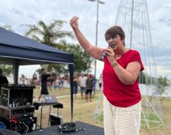 A prefeita Darlene falou da satisfação de estar no Taim e, especialmente na Capilha, "para viver esse momento comunitário num verdadeiro paraíso. Que saibamos cuidar e valorizar do que é nosso. Da nossa cultura", disse Darlene, acrescentando que o Natal nas Praças tem esse objetivo de ser espaço de integração comunitária. Desejou a todas as famílias rio-grandinas um Natal de fraternidade e um 2026 cheio de coisas boas.