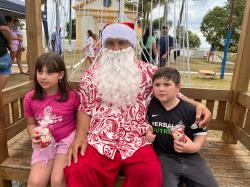 Na quarta ação do Natal nas Praças, promovido pela Prefeitura Municipal em parceria com associações de bairros, entidades e empresas, o Papai Noel chegou para as crianças da Capilha, distrito do Taim, neste domingo, 21.