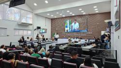 Prefeita e vice participam da sessão de posse do novo presidente da Câmara e sua equipe; gestão começa em janeiro de 2026