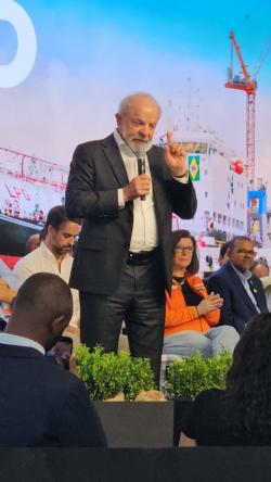 Durante o evento, Lula falou sobre o momento da indústria naval. “Hoje estamos dando mais um passo importante na retomada forte da indústria naval brasileira, sobretudo em Rio Grande. Fico muito feliz em ver essa estrutura voltando a dar retorno positivo pra cidade e pro Brasil”. A prefeita Darlene Pereira também ressaltou a importância da assinatura dos contratos para a cidade. “Faz menos de um ano que o presidente estava aqui conosco, na ocasião, trazendo a excelente notícia para nós, concreta, de quatro navios. E na época nós entregamos um documento, no último item do documento a gente pedia a ampliação da indústria naval em Rio Grande. Hoje, menos de um ano depois, ele volta para anunciar mais cinco navios gaseiros. Isso é entrega concreta, é trabalho pelo Rio Grande, e é geração de emprego e renda para o nosso município.”