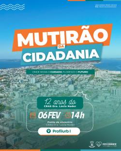 A Prefeitura Municipal realiza mais uma edição do Mutirão da Cidadania, que chega ao bairro Profilurb I na sexta-feira, dia 6, a partir das 14h, aproximando os serviços públicos da comunidade. A ação marca os 12 anos do Centro de Referência de Assistência Social (CRAS) Dra. Lúcia Nader, local que será o ponto de encontro do mutirão.