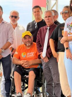 Entre os destaques, Gabriel citou o serviço de banho assistido, realizado por meio da FADERS em parceria com o Corpo de Bombeiros Militar. “Já temos o Ifood, que leva comida quando a gente pede, e agora criamos o Ibanho"*, brincou. *"Trata-se de um serviço que permite o agendamento do banho de mar assistido por WhatsApp, utilizando cadeiras anfíbias nas guaritas acessíveis. Para muitos, pode parecer algo simples, mas para várias pessoas foi a oportunidade do primeiro banho de mar de sua vida”, concluiu.