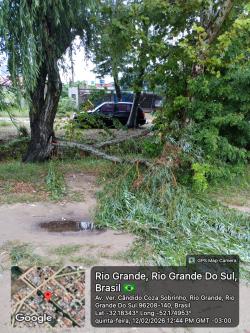 Um temporal deixou estragos em Rio Grande na quinta-feira (12). Especialmente no interior do município, como na Capilha, o evento climático deixou casas destelhadas. A equipe da Prefeitura registrou 12 árvores caídas em diferentes partes da cidade, mas com maior concentração no Cassino.