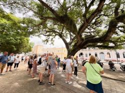 Na Praça Xavier Ferreira, os turistas encontraram um verdadeiro espaço de integração. Membros da Rede de Mulheres Empreendedoras do Rio Grande levaram gastronomia e comércio de produtos artesanais e personalizados, proporcionando que os turistas pudessem levar uma lembrança da cidade para casa. No mesmo espaço, os turistas prestigiaram a dança tradicionalista da cultura gaúcha, além de uma apresentação indigena, promovendo uma vitrine cultural das tradições do Rio Grande do Sul e do Brasil para os visitantes.