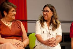 A presidenta do Sinterg, Suzane Barros destacou a necessidade de unidade da categoria e defesa de pautas ligadas à valorização profissional e à promoção de uma cultura de respeito nas escolas. A presidenta do Conselho Municipal de Educação, Maria Aparecida Reyer, ressaltou o trabalho conjunto entre Conselho, SMEd e escolas. A vereadora Regininha, representando o Legislativo, enfatizou o papel da escola no enfrentamento às violências e na promoção da inclusão.