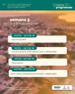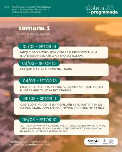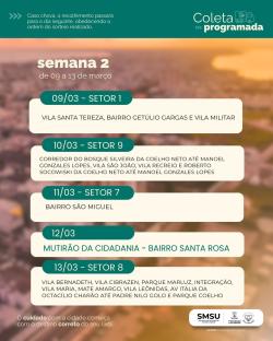Coleta Programada: SMSU divulga cronograma de 2 de março a 2 de abril