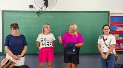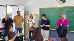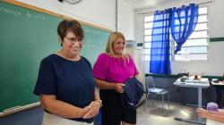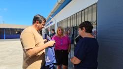 Durante visita à EMEF São João Batista, a prefeita Darlene Pereira acompanhou a distribuição dos uniformes e destacou a importância da ação para a comunidade escolar.