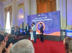A Prefeitura do Rio Grande, por meio da Rede de Mulheres Empreendedoras da Secretaria de Município de Desenvolvimento, Inovação, Turismo e Economia do Mar - SMDITMAR, participou, na manhã desta quarta-feira (4), da solenidade de certificação do selo “EmFrente Mulher”, promovido pelo Governo do Estado.