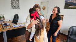 Durante o encontro, intermediado pelo presidente da Câmara Municipal, vereador Rogério Gomes, Julia e sua mãe, Joneisa Mayer, conversaram com a prefeita e com sua assessora superior Eunice Lindenmeyer sobre as dificuldades enfrentadas para representar a cidade no meio tradicionalista.