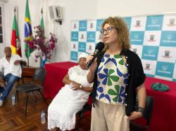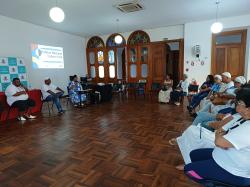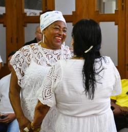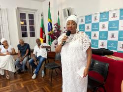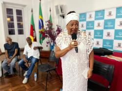 Lideranças religiosas ligadas a terreiros de matriz africana do município do Rio Grande participaram, na noite de sexta-feira (13) e no final da tarde e início da noite de sábado (14), de dois encontros realizados no Salão Nobre Deputado Carlos Santos, na Prefeitura Municipal. As atividades contaram com a presença de Mãe Carmen de Oxalá, líder religiosa e diretora espiritual da Associação Beneficente Cultural Africana Templo de Yemanjá (Assobecaty), de Guaíba, que orientou as comunidades locais sobre o acesso a políticas públicas, especialmente a Política Nacional Cultura Viva, do Ministério da Cultura.