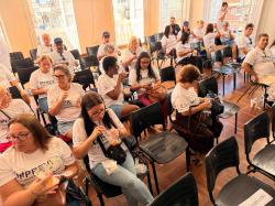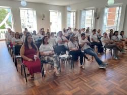 O evento também contou com duas palestras direcionadas aos aposentados. A primeira foi ministrada por uma equipe do Banrisul, que falou sobre educação financeira e tópicos como planejamento financeiro, os golpes mais comuns aplicados atualmente e dicas de segurança. Na sequência, a coordenadora de Políticas para Pessoas Idosas, Kátia Martins, que é gerontóloga e abordou o tema “ Construindo um envelhecimento com direitos, autonomia e sentido”.