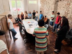A atividade foi realizada inicialmente no Salão Nobre da Prefeitura do Rio Grande e, posteriormente, os estudantes foram divididos em grupos para conhecer os dois espaços de acervo, a Fototeca Municipal e o Arquivo Histórico, onde tiveram contato com as rotinas de trabalho, dinâmicas de organização, conservação e pesquisa de documentos e imagens.