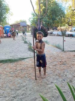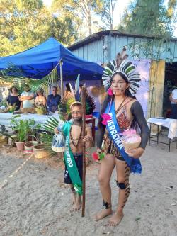 Marina Salles, 15 anos e Davi Fortes, 7 anos foram vencedores no concurso da mais bela e do mais belo indígena, ou “guerreiros e guerreiras”, no evento realizado na tarde deste domingo (26), na aldeia Goj Tánh, localizada no Horto Municipal no balneário Cassino. A atividade foi uma das ações do Abril Indígena e contou com o apoio da Prefeitura do Rio Grande, por meio da Coordenadoria de Políticas Públicas para os Povos Indígenas e da Secretaria de Cultura e Economia Criativa (SMCEC).