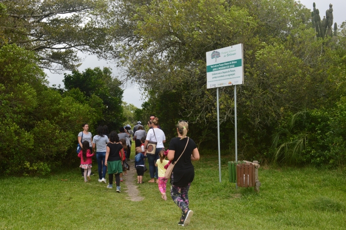 Querendo também fomentar o apego ao Parque Urbano do Bolaxa, a Secretaria de Município do Meio Ambiente organizou e acompanhou uma trilha orientada com a oceanóloga Kamila Debian dentro da área de preservação com as famílias. No local, também foi possível realizar a inscrição para o Projeto Pé na Areia – Educadores Ambientais Mirins da Unidade de Educação Ambiental da SMMA, que está com as inscrições abertas neste mês.