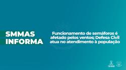Funcionamento de semáforos é afetado pelos ventos; Defesa Civil atua no atendimento à população