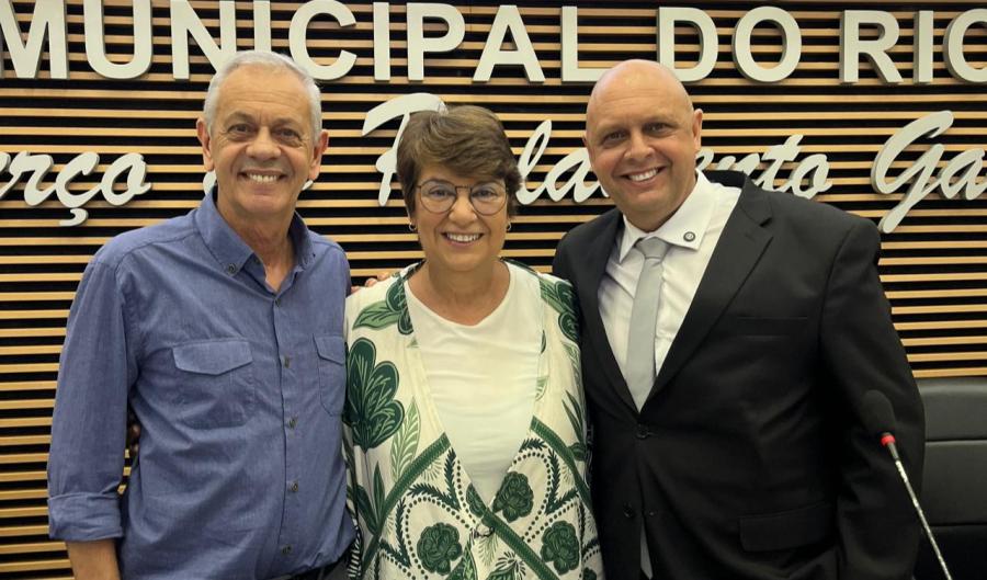 Prefeita e vice participam da sessão de posse do novo presidente da Câmara e sua equipe; gestão começa em janeiro de 2026