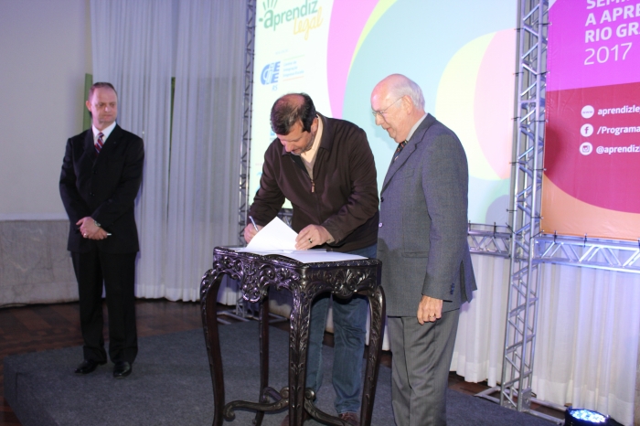 Na noite desta terça-feira (20), na Câmara do Comércio do Rio Grande, o Centro de Integração Empresa-Escola do Rio Grande do Sul (CIEE-RS) e a Fundação Roberto Marinho, com o apoio da Câmara de Comércio e da Prefeitura do Rio Grande, realizaram o 2º Seminário sobre Aprendizagem do Rio Grande do Sul 2017. Na ocasião foi assinado o Protocolo de Intenções entre a Prefeitura e o CIEE-RS para o desenvolvimento do Programa Aprendiz Legal.