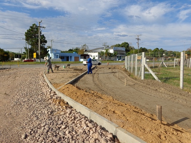 - Colocação de meio-fio na ERS-734 e rebaixamento da pista para a colocação de saibro;