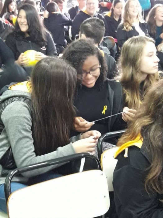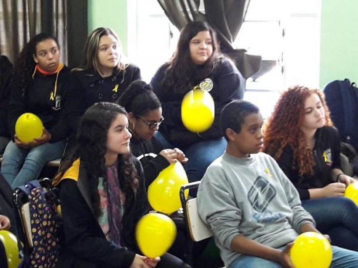Dentre as atividades realizadas na escola, na manhã do dia 18 de setembro, os estudantes dos Anos Finais conversaram sobre a campanha do “Setembro Amarelo” com a psicóloga Cláudia Degani, que atua no Centro de Atendimento Psicossocial Infanto-Juvenil (CAPSi).Além disso, o espaço possibilitou abordar a importância de termos um olhar atento ao outro, no sentido de compreender os sinais de depressão e suicídio. A psicóloga também ressaltou o quanto é fundamental buscar ajuda e dialogar nos primeiros sinais da doença.