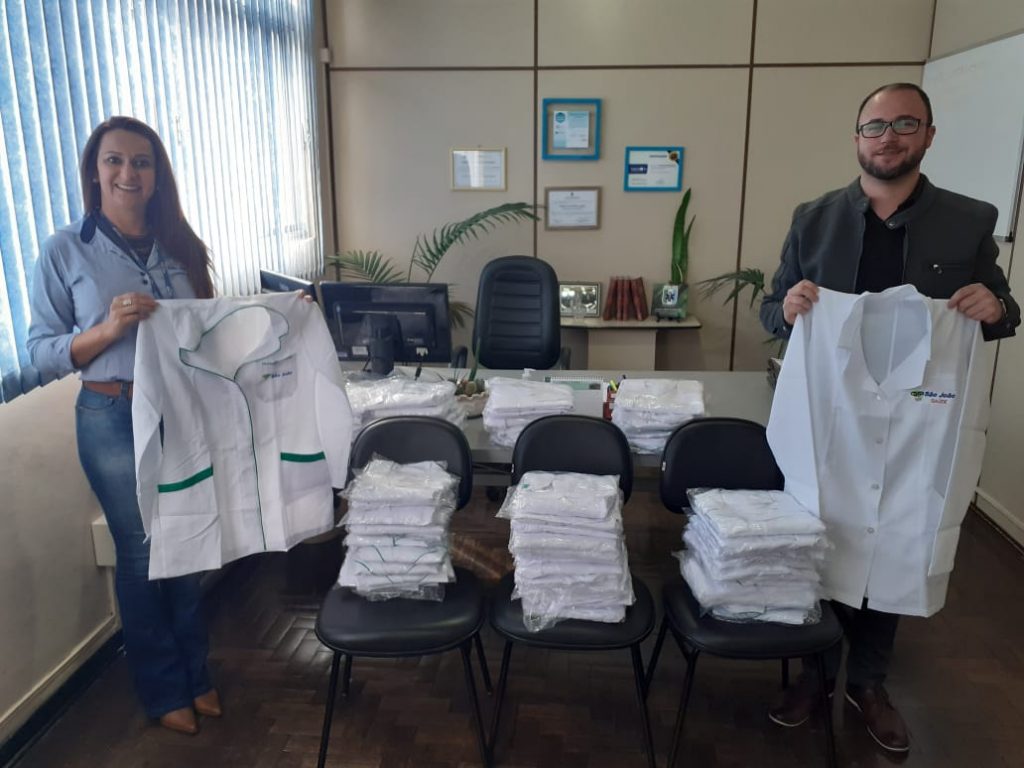 A Secretaria de Saúde de Rio Grande (SMS), recebeu na manhã de hoje (08), a doação de 60 jalecos para utilização das equipes de saúde do município no enfrentamento ao Coronavírus. A rede de farmácias São João foi a responsável pela doação, realizada por meio da por meio da gerente regional da empresa, Diene de Araújo Soares, que esteve na sede da SMS para entrega do material ao secretário Maicon Lemos.