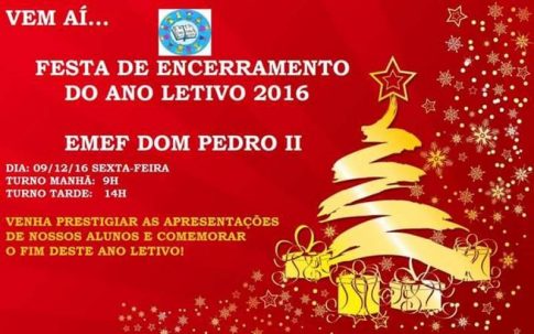 EMEF Dom Pedro II realizará “Festa de Encerramento do Ano Letivo” no dia 09 Divulgação SMEd Roberton Reis Com informações da EMEF Dom Pedro II
