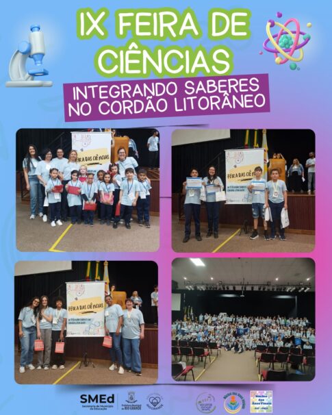 Aconteceu no dia 21/10, no Cidec/FURG, a premiação das escolas públicas participantes da IX Feira das Ciências: Integrando Saberes no Cordão Litorâneo, do projeto de extensão da Universidade Federal do Rio Grande/FURG, o qual tem como objetivo incentivar a criação de espaços não formais de ensino e aprendizagem no município, fortalecendo o protagonismo dos estudantes e o papel investigativo da escola.